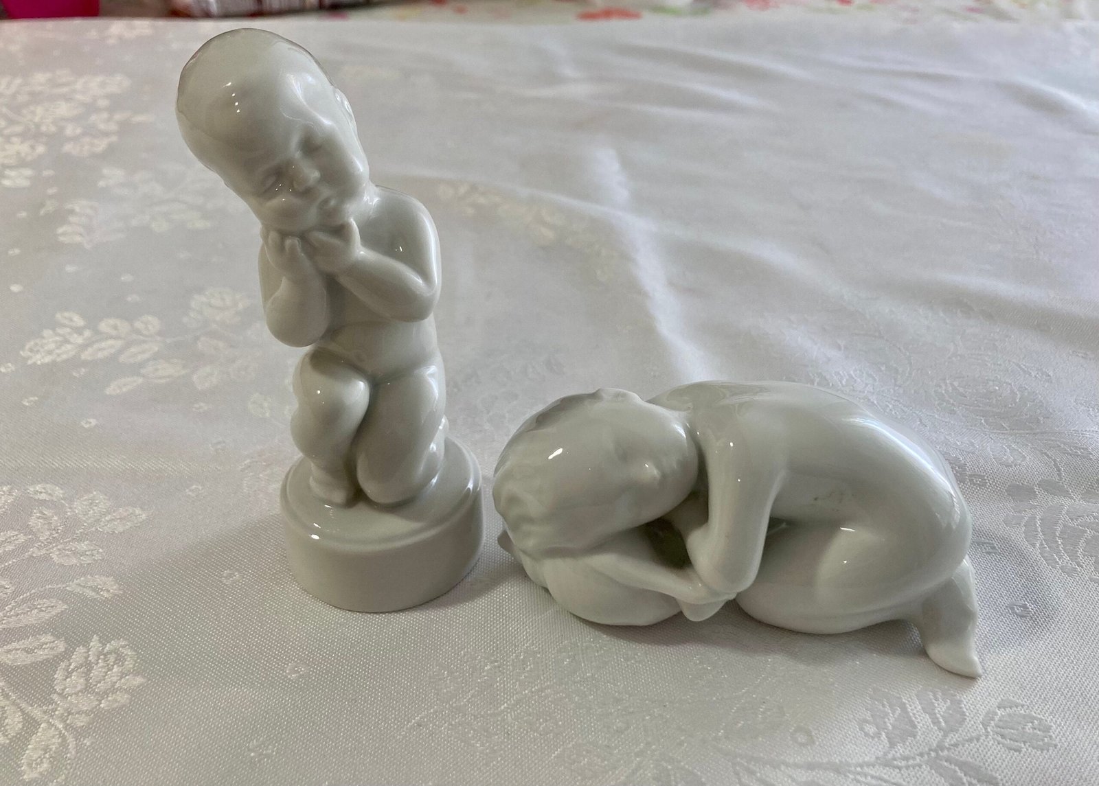 Estas cuatro figuras, que representan a dos niños, están diseñadas por el escultor danés Svend Linhart y producidas por los aclamados fabricantes de porcelana de Bing & Grondahl (ahora Royal Copenhagen), probablemente alrededor de mediados de siglo. Mire esta excelente porcelana de calidad blanc de chine y el fascinante tema.